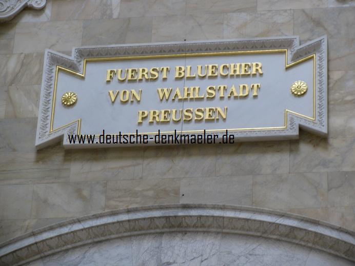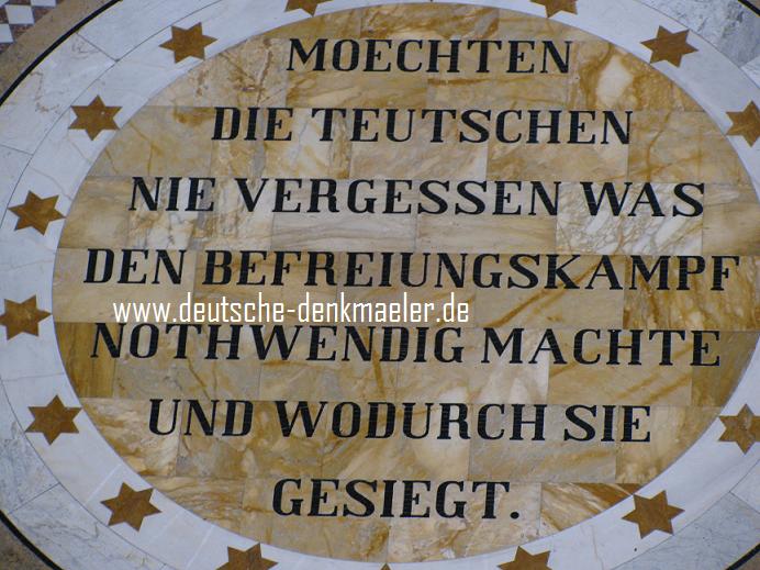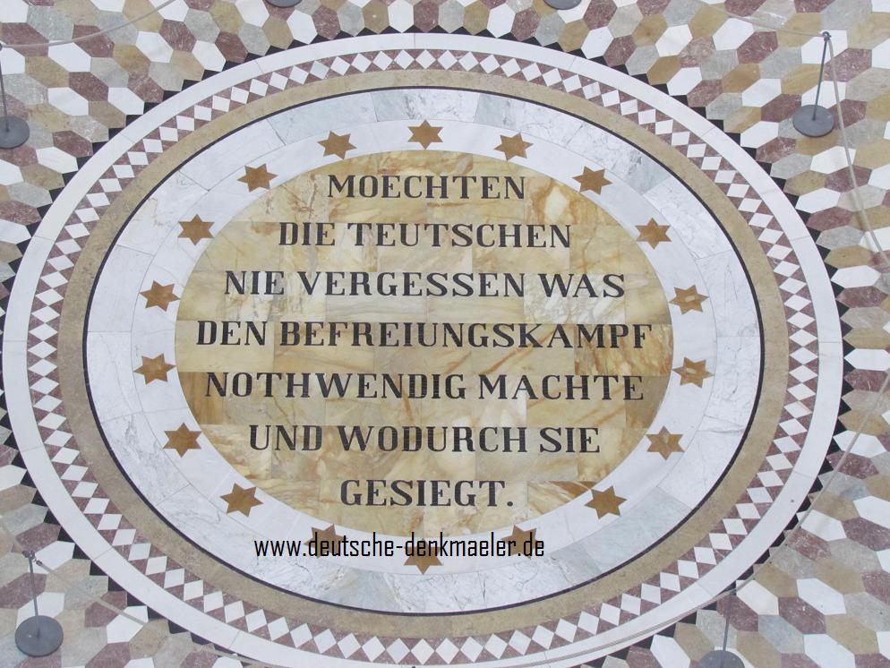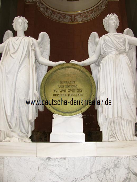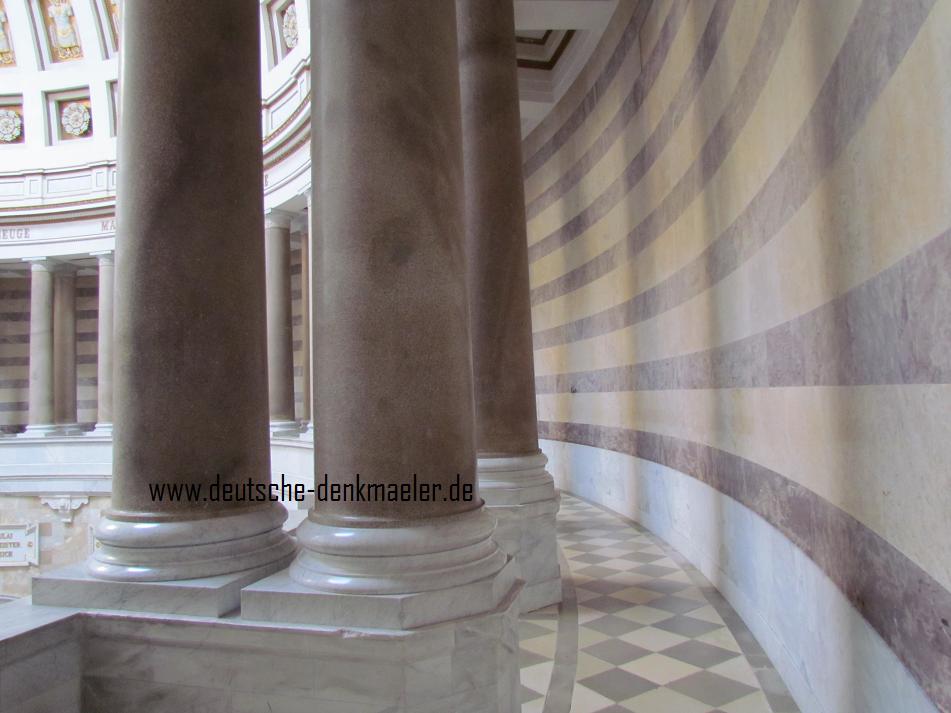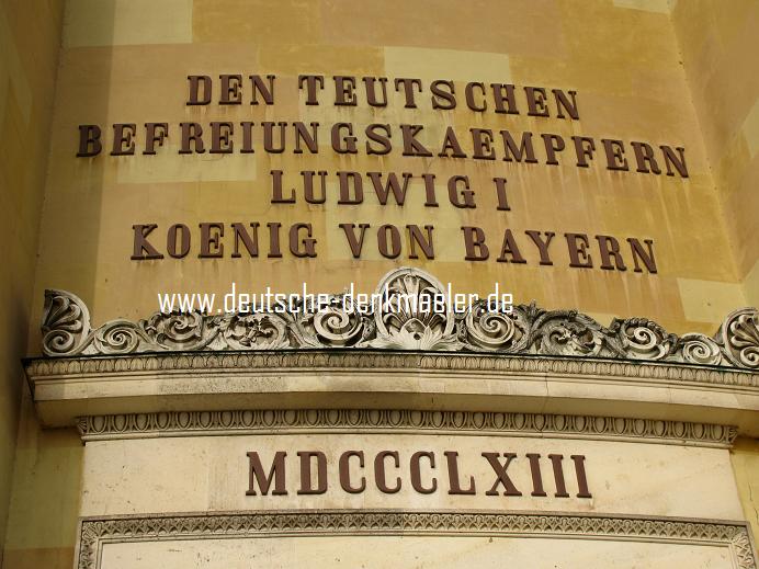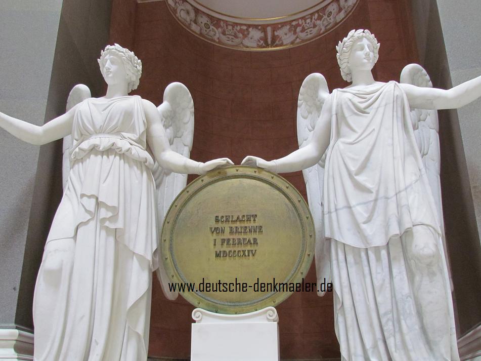 Außen an der Halle stehen Figuren, die Schilder mit den Namen der deutschen Volksstämme in die Höhe halten. Im Inneren halten überlebensgroße Marmorengel Schilder auf denen die Schlachten der Befreiungskriege aufgeführt sind. Diese Schilder wurden aus eroberten französischen Geschützen gefertigt.