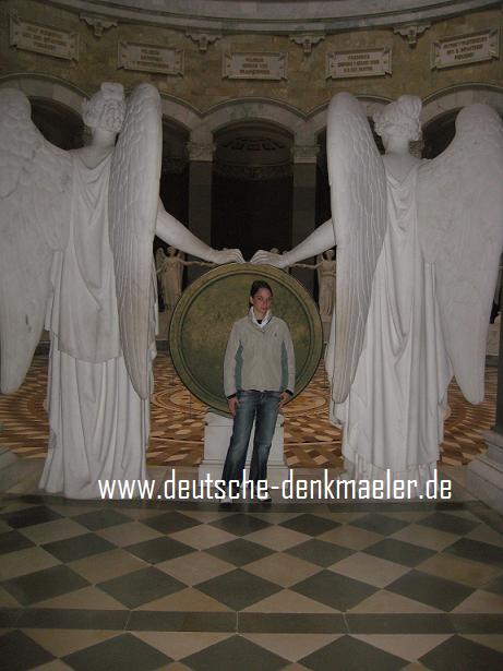 Zum Größenvergleich neben den Engeln in der Befreiungshalle