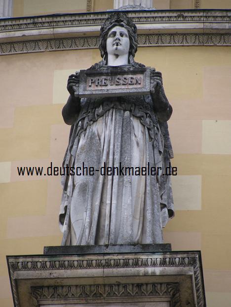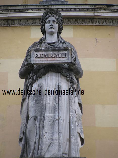 Eine der Fassadenfiguren mit dem Namen eines deutschen Volksstammes